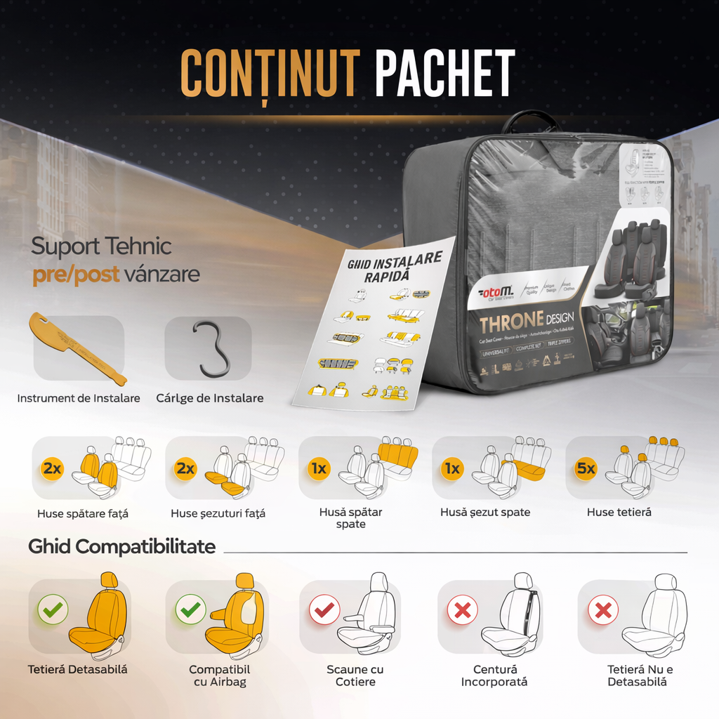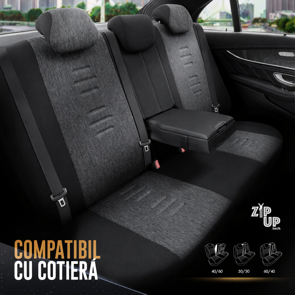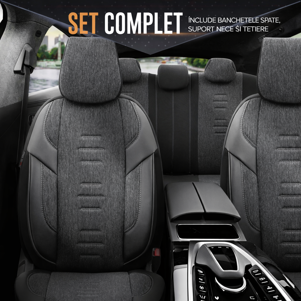 Huse Scaune pentru Masini Auto Universal Negru Gri Lux Piele Set Complet
